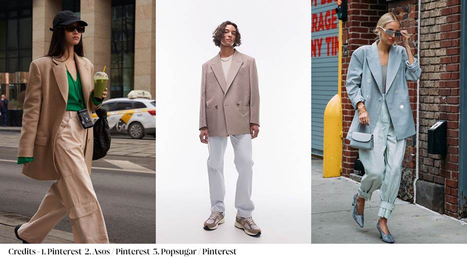 Women: An oversized pastel or neutral blazer can be paired with turtlenecks, midi skirts, or even a slip dress for a smart-casual look.