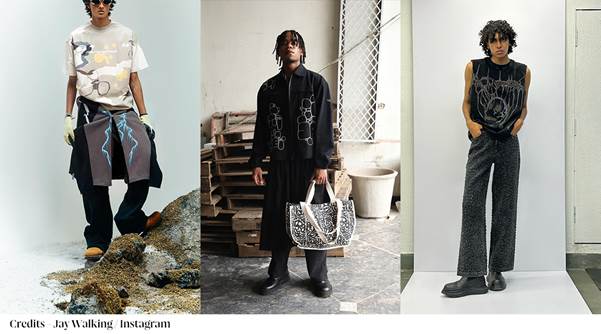This fashion house offers a range of gender-fluid, men’s, and women’s ready-to-wear and custom pieces, all showcasing Jay’s signature style. As one of India’s trailblazers in streetwear, Jaywalking embraces a unique aesthetic characterised by deconstruction, experimentation, and the fusion of Jay’s memories and mindset. Drawing inspiration from his own artwork, Jay emphasizes the visual impact of each design.